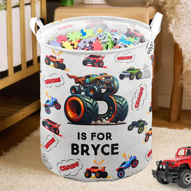 Featuring a lively monster truck-themed alphabet design, this storage bin brings a cheerful and bold vibe to any child’s room or nursery.