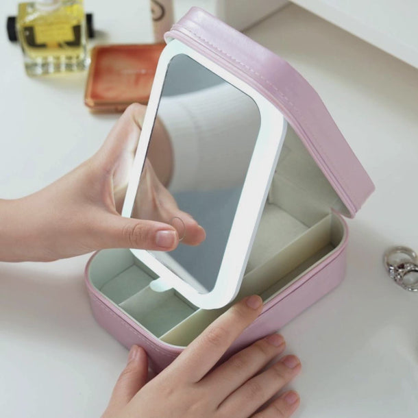Elevate your jewelry organization with this exquisite, customizable Jewelry Box, designed to bring both style and functionality to your daily routine. This elegant box features a LED Three-Color Adjustable Makeup Mirror, making it the perfect accessory for applying makeup or putting on jewelry with ease and precision.