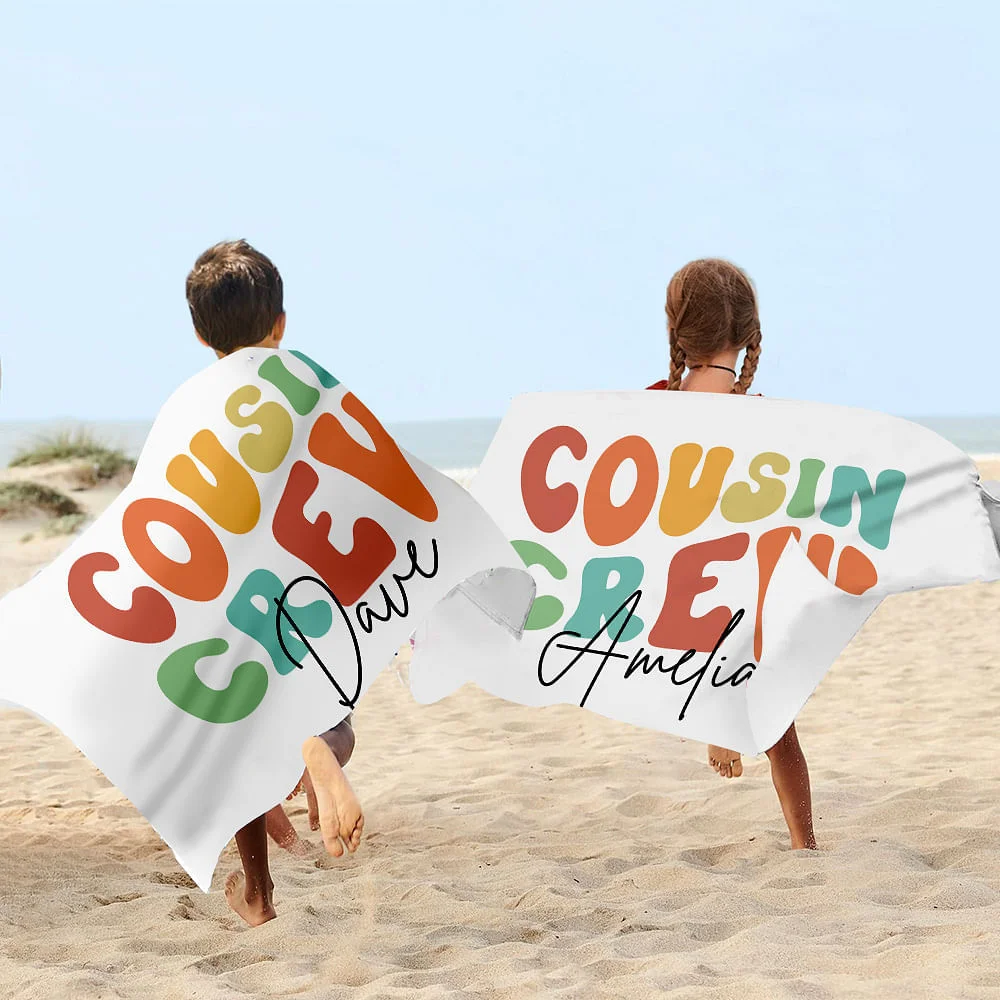 Personalized Colorful Cousin Crew Quick Dry Oversized Beach Towel with Name Summer Travel Essential Gift for Family Kids