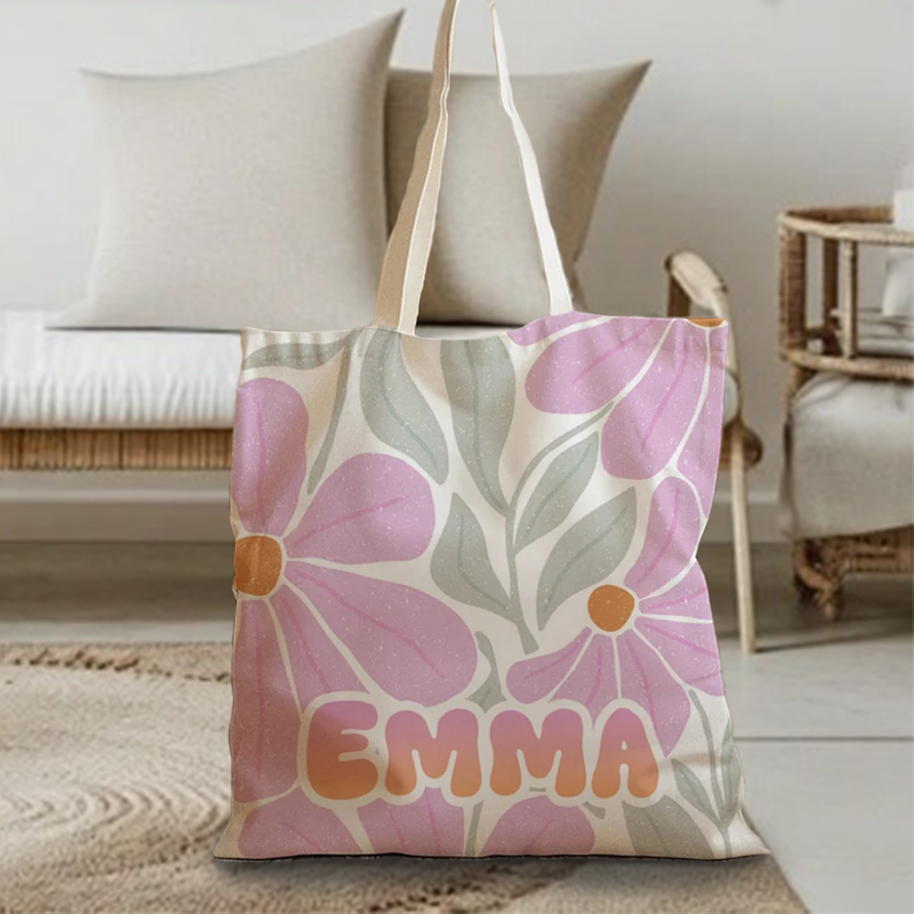 Personalized Floral Tote Bag with Name Bloom in Style Perfect for Birthdays, Anniversaries & Vacations