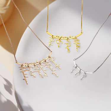 Celebrate the special bonds of family with this beautifully crafted Personalized Names Hanging Family Necklace. Designed to carry the names of your loved ones, this necklace offers a unique way to showcase the people who matter most. Whether it’s for a proud mother, grandmother, or a cherished family member, this customizable piece will be a treasured keepsake.