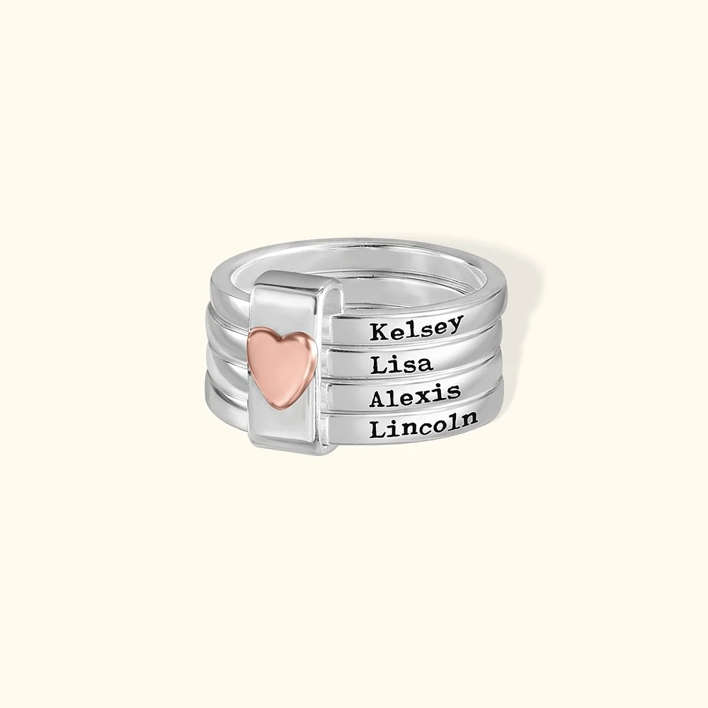 Personalized Heart Stacking Rings with Names – Custom Silver Family Jewelry Gift for Her